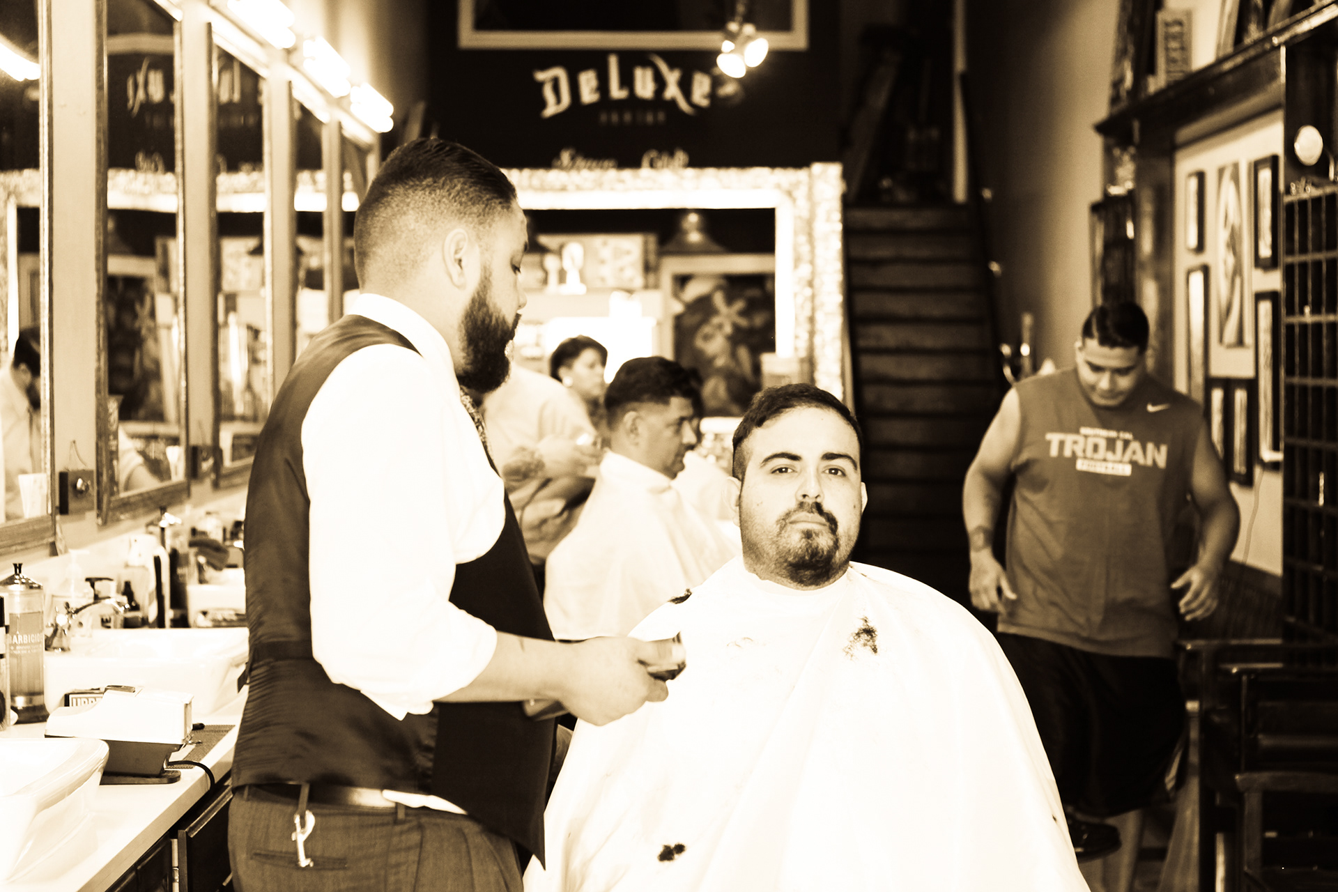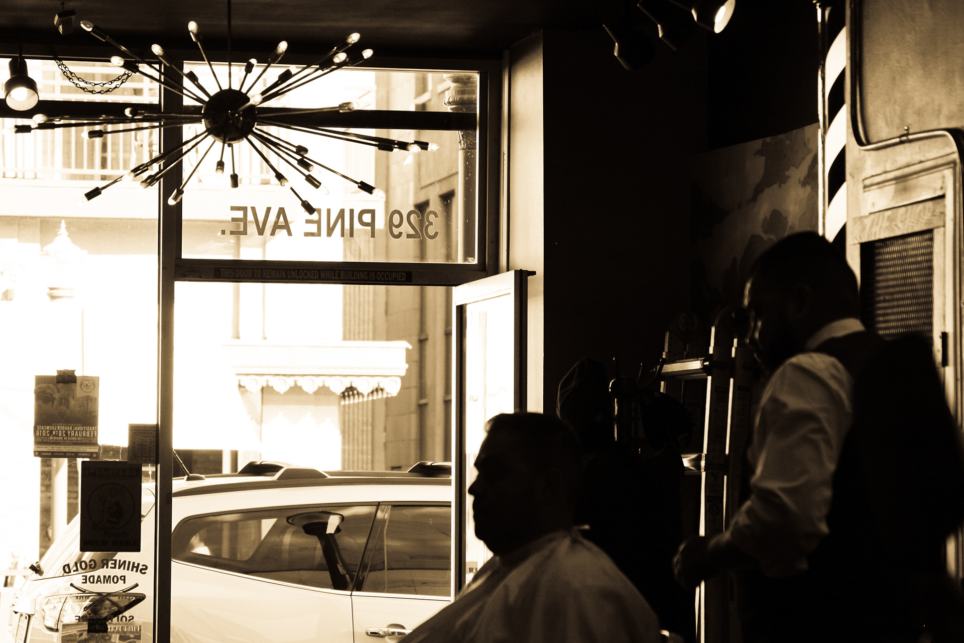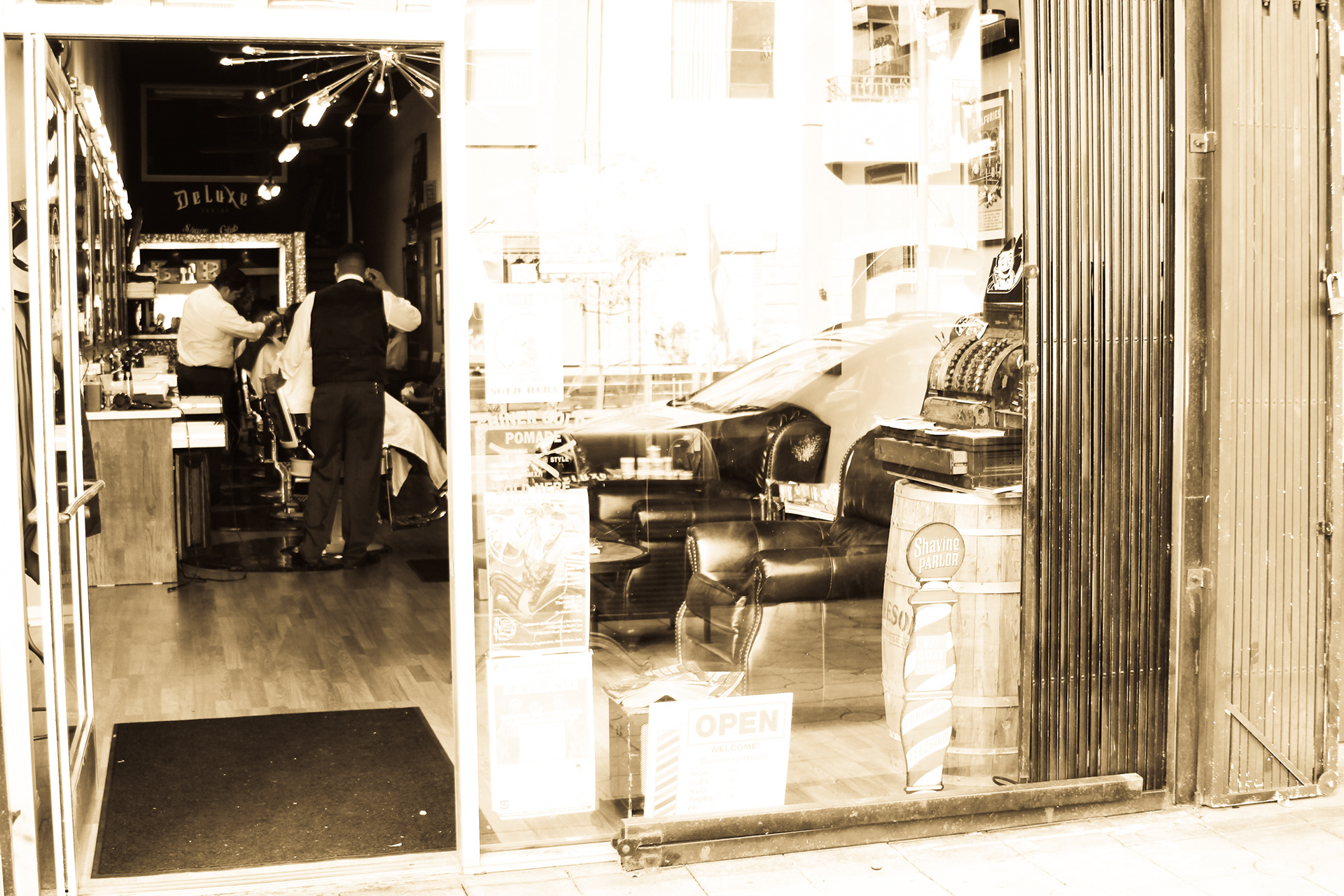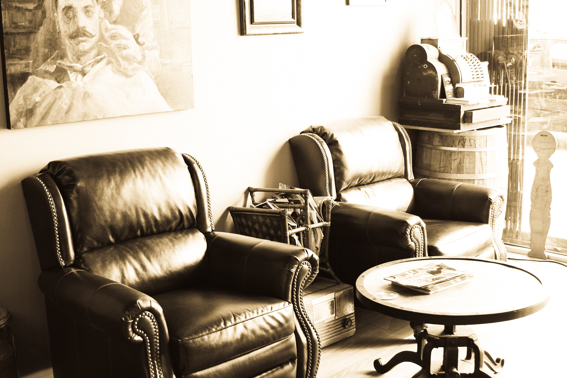 Using sepia filter to create a vintage look and a shallow depth of field to focus the attention on specific details helps to impart an intimate yet timeless feeling. From the waiting area to the barber chair, great attention was paid to the POV of the photography ensuring that the customer's view of the experience is being captured.